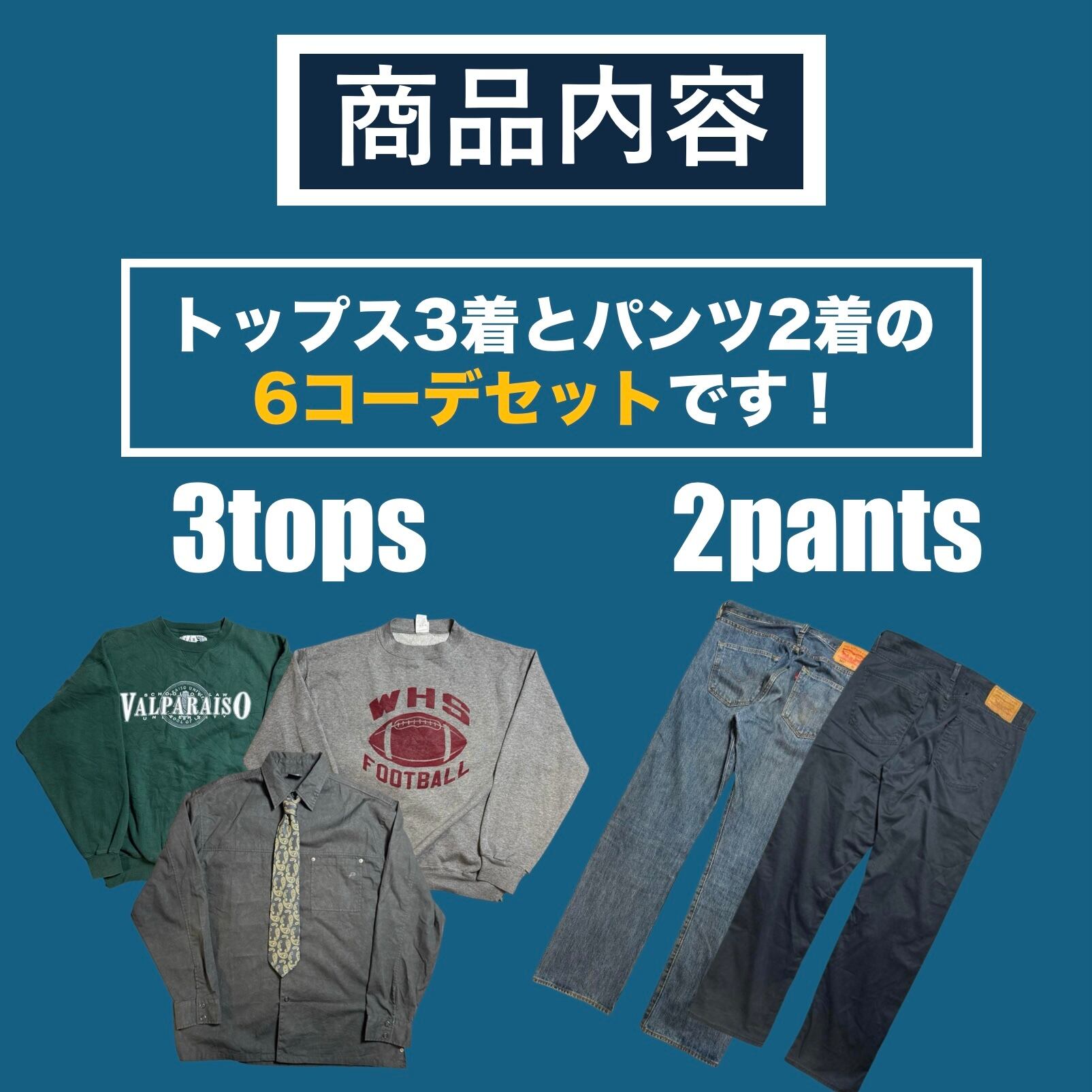 トップス3着とパンツ2着がセットになっており、このBOXだけで6通りのコーデが完成します!